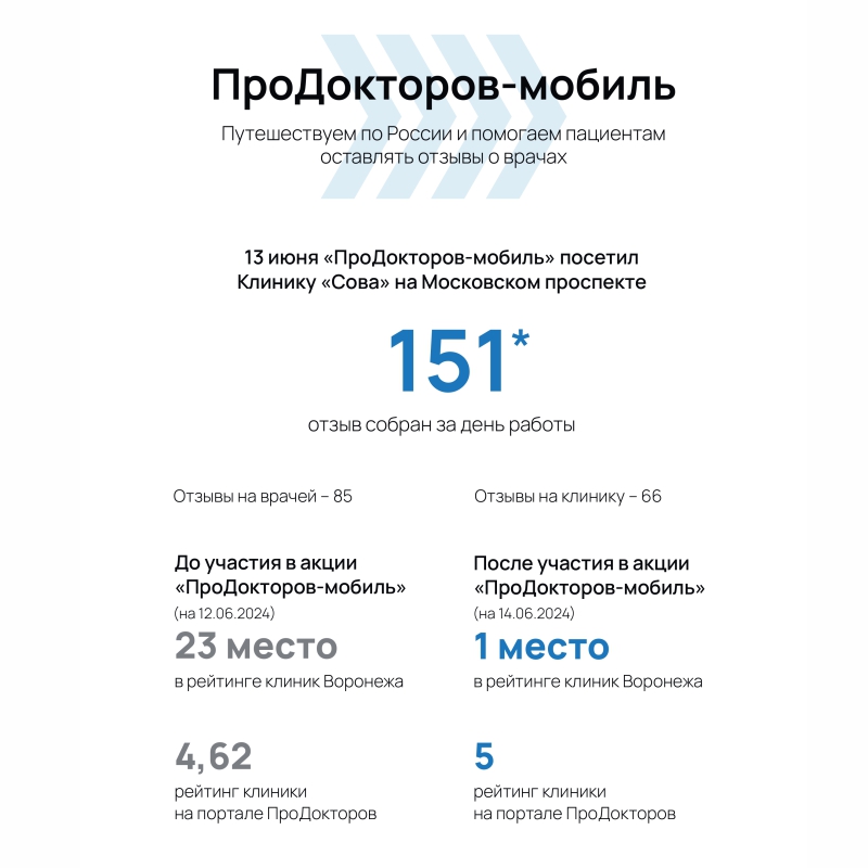 Многопрофильная клиника «СОВА» присоединилась к всероссийскому проекту по сбору отзывов пациентов — «ПроДокторов-мобиль».