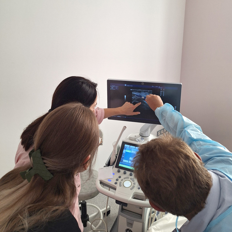 Сергей Иванович показал анестезиологам нашей клиники технику проведения блокад нервных сплетений и отдельных периферических нервов под ультразвуковым контролем. Данная техника позволяет проводить некоторые операции без использования общей анестезии, а также применяется для длительного послеоперационного обезболивания.