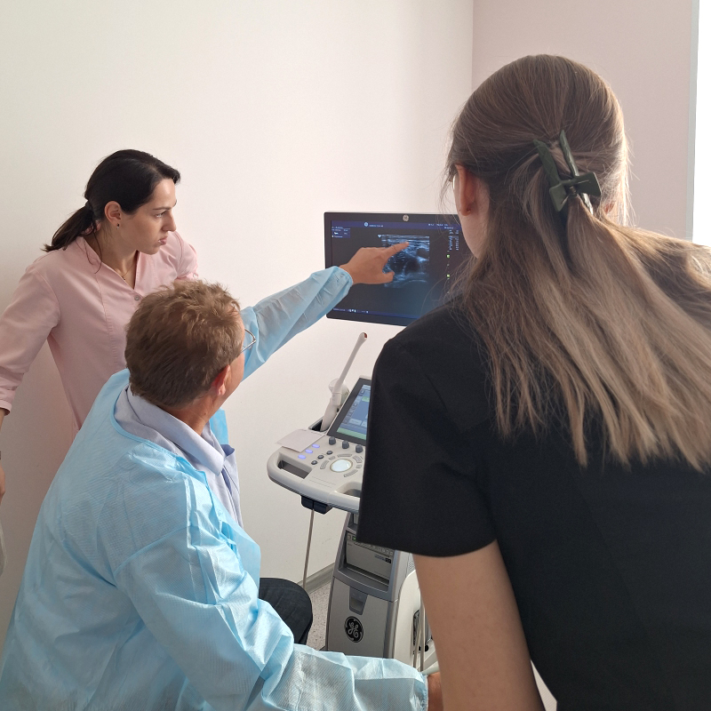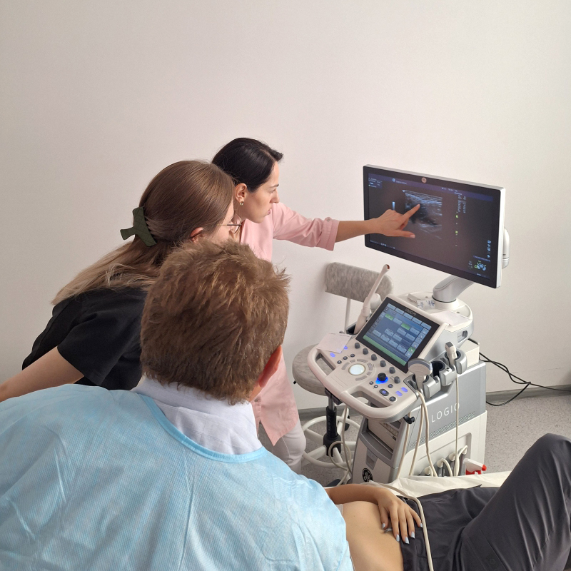 Заведующий отделением анестезиологии Григорий Израилевич Цинкерман и врач-анестезиолог Сергей Иванович Сукочев провели мастер-класс по проведению регионарной анестезии под контролем УЗИ. Это мероприятие было очень полезным для наших специалистов, которые смогли получить новые знания и опыт от своих коллег.