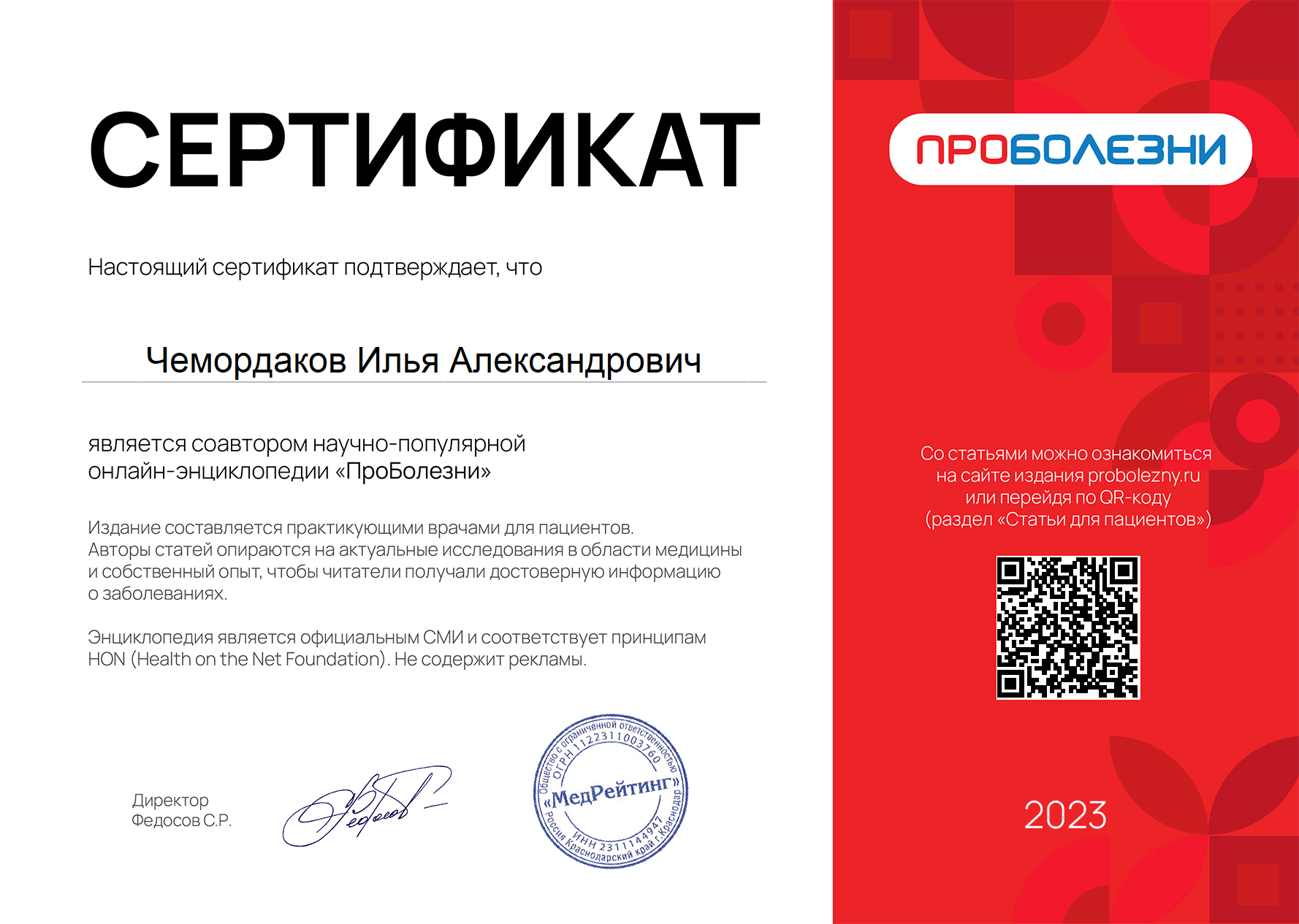 Замечательный доктор — Чемордаков И. А. Всё доступно и понятно объяснил. Ничего лишнего. Благодарю!