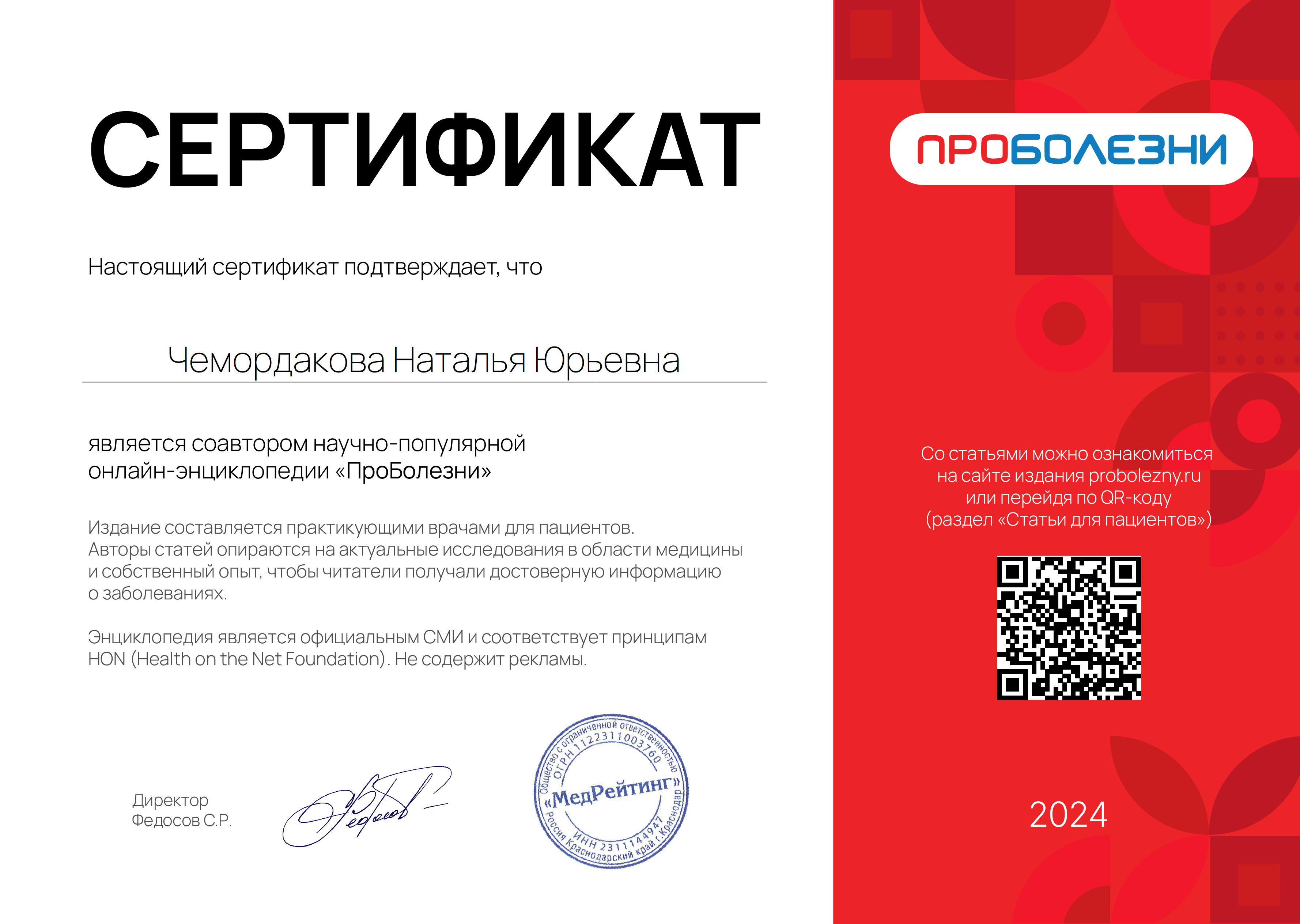 К Чемордаковой Наталье Юрьевне ходила впервые, а недавно была повторно. Выбрала ее по отзыву на сайте «ПроДокторов». Она принимала без задержек, помнится, даже продлевала время, если требовалось. У...
