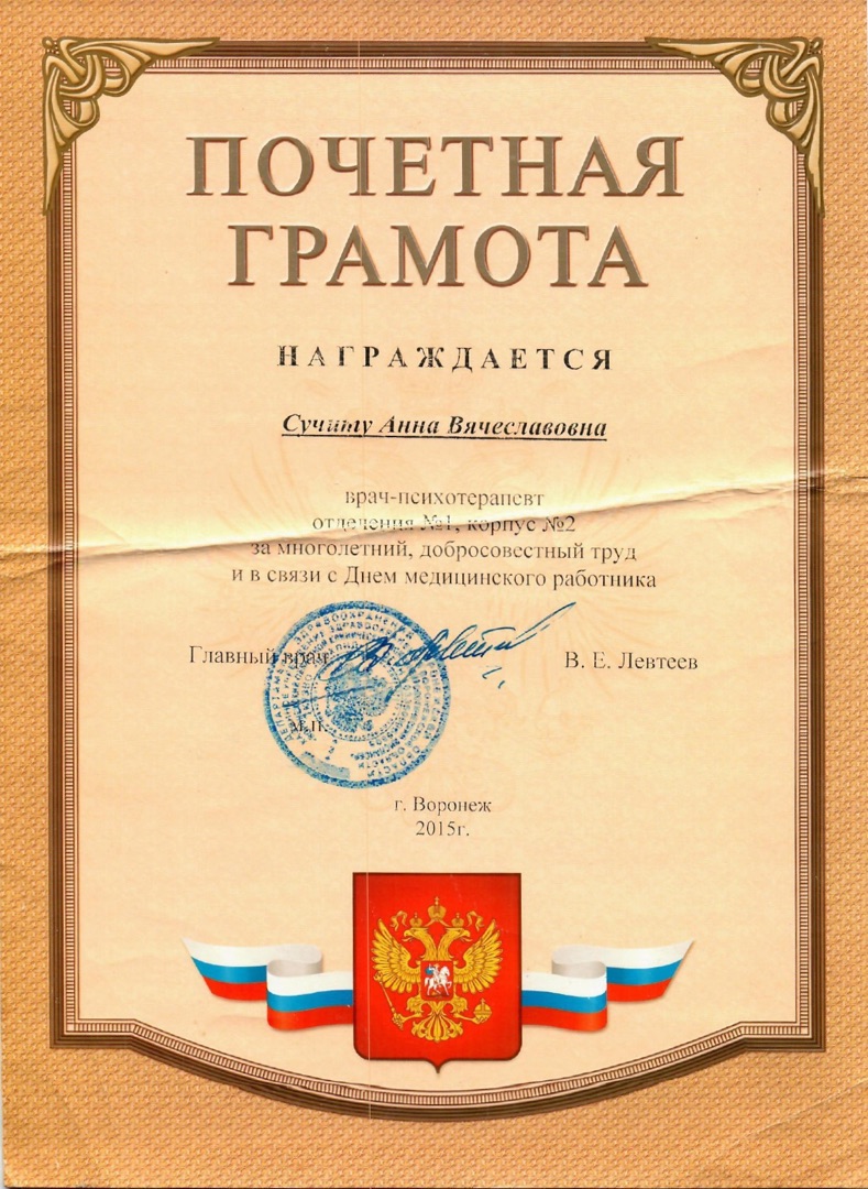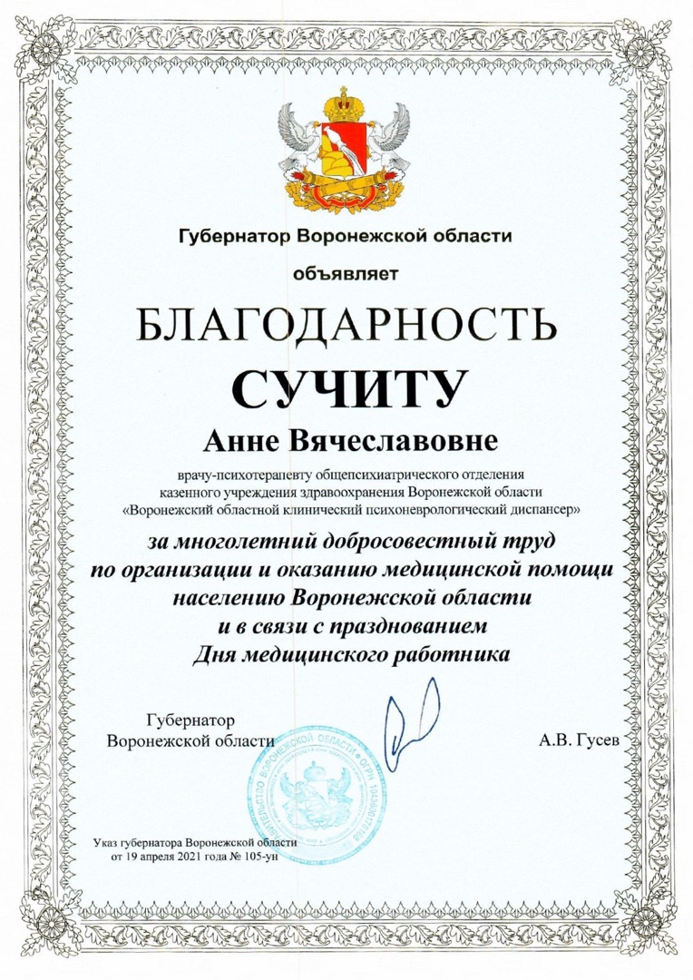 Всероссийская премия ПроДокторов 2021: 2 место в категории "Психотерапевты" по Воронежской области.