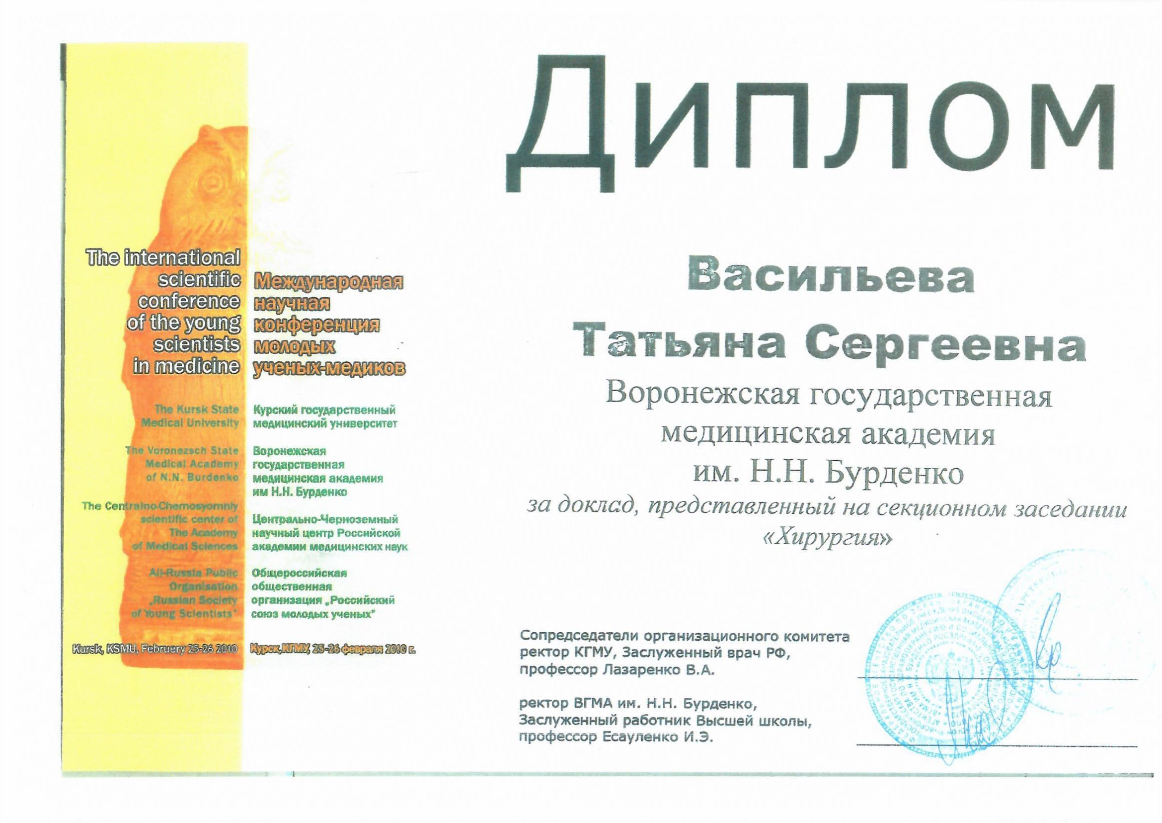Всероссийская премия ПроДокторов 2021: 1 место в категории "Хирурги" по Воронежской области.