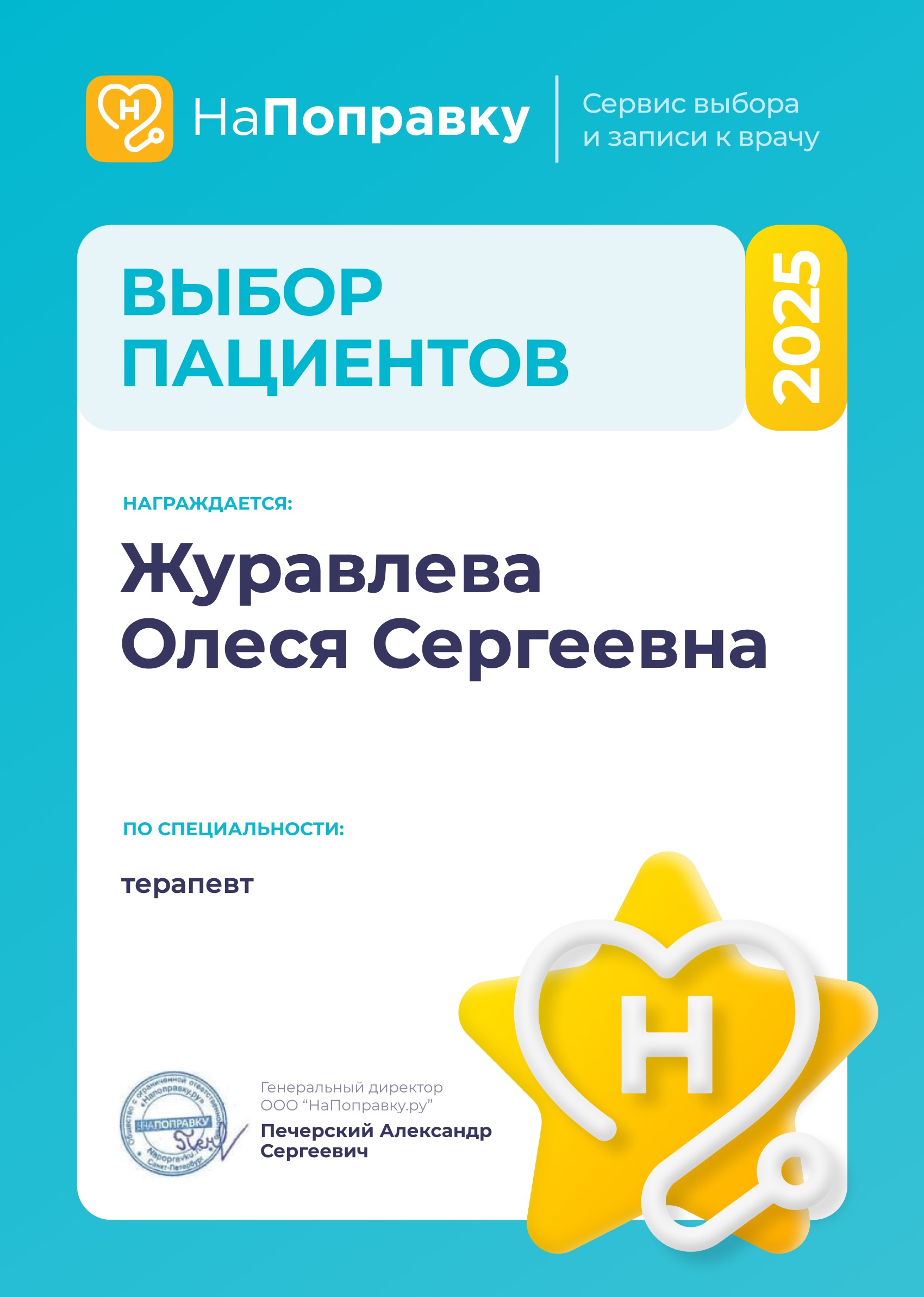 Обратилась к врачу-терапевту Журавлевой Олесе Сергеевне после перенесенного ковида. Мне было очень приятно, что попала к такому внимательному доктору. Назначенное ее лечение сразу дало...