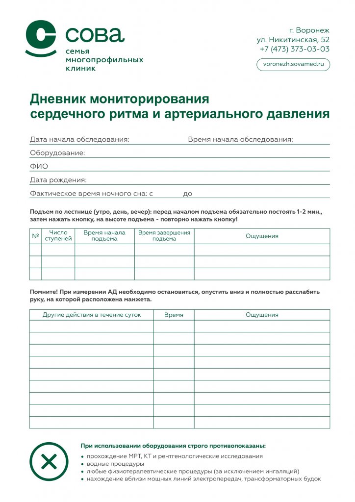 Скачать дневник мониторирования сердечного ритма и артериального давления